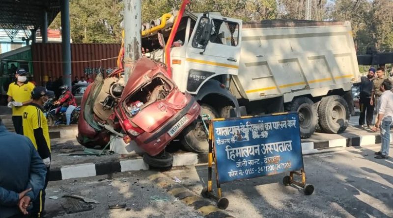 टक्कर इतनी जबरदस्त थी कि कार ट्रक और वहां खड़े पोल के बीच में दब गई। पुलिस अधीक्षक (ग्रामीण) जया बलूनी ने बताया कि देहरादून-हरिद्वार हाईवे पर लच्छीवाला टोल प्लाजा पर डंपर ने तीन कारों को टक्कर मार दी, जिसमें दो लोगों की मौत हो गई। पुलिस और एसडीआरएफ मौके पर बचाव अभियान चलाकर वाहनों में फंसे लोगों को निकालने का काम कर रही है।