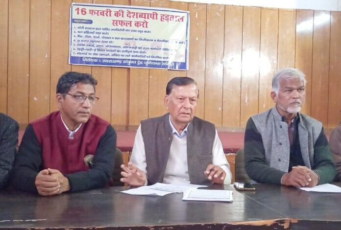 बुधवार को प्रेस क्लब में पत्रकारों से वार्ता करते हुए बिष्ट ने कहा कि केन्द्र की मोदी सरकार व उत्तराखण्ड सरकार मेहनतकश लोगों के जीवन और आजीविका पर बर्बर हमले कर रही है और विभिन्न कानूनों, अध्यादेशों और नीतिगत अभियानों के माध्यम से श्रमिक विरोधी-किसान विरोधी और जन विरोधी कदम उठा रही है। यह सरकार राजव्यवस्था और संवैधानिक संस्थाओं का साम्प्रदायिकरण कर रही है तथा योन उत्पीडन के दोषियों के आरोपी अपराधियों को बेशर्मी से बचा रही है। उन्होंने कहा कि कानून व व्यवस्था पर से लोगों का भरोसा उठता जा रहा है। विपक्षी 146 सांसदों को निलम्बित कर सरकार के द्वारा हाल ही में चालकों व जन विरोधी काला कानून मोटर वाहन अधिनियम 2023 को संसद में विपक्ष की अनुपस्थिति में पारित किया गया है जिसके तहत दुघर्टना के पश्चात सात साल की सजा व दस लाख रूपये जुर्माना होगा जिसका सर्वत्र विरोध किया जा रहा है। उन्होंने कहा कि इस सरकार के द्वारा करोना काल में जब दुनिया में त्राही-त्राही मची थी 2020 में आपदा को अवसर में बदलते हुए 44 श्रम कानूनों में से 29 श्रम कानूनों को समाप्त किया गया तथा मालिकों व पूंजीपतियों के हितों में चार श्रम संहिताएं बनायी गयी है। जिससे मजदूर वर्ग को गुलामी की ओर धकेला जा रहा है। उन्होंने कहा कि सरकार के द्वारा सार्वजनिक सम्पत्तियों को बडी ही चालाकी से पंूजीपतियों को कौडी के भाव से बेच रही है। उन्होंने कहा कि 16 फरवरी को होने वाली हडताल के माध्यम से राष्ट्रपति से मांग करेंगे कि इन मजदूर, किसान व जनविरोधी फैसलों को तत्काल वापस लेने हेतु केन्द्र सरकार को निर्देशित करें। प्रेस वार्ता में महेन्द्र जखमोला, अशोक शर्मा, लेखराज आदि मौजूद थे।