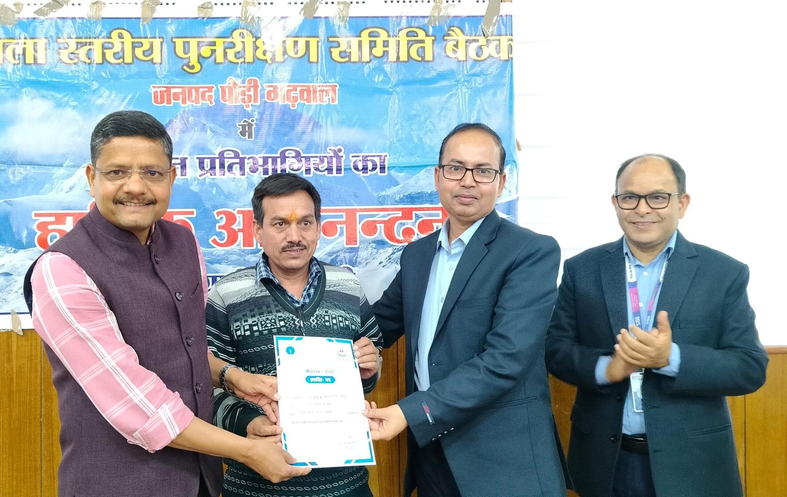 बैठक के दौरान मुख्य विकास अधिकारी ने उत्कृष्ट कार्य करने वाले बैंक अधिकारियों को सम्मानित भी किया। मुख्यमंत्री स्वरोजगार योजना व एनआरएलएम में उत्कृष्ट प्रदर्शन के लिए जिला सहकारी बैंक प्रथम स्थान, उत्तराखंड ग्रामीण बैंक द्वितीय तथा स्टेट बैंक ऑफ इंडिया ने तृतीय स्थान प्राप्त किया। जिसमें मुख्यमंत्री स्वरोजगार योजना व एनआरएलएम में जिला सहकारी बैंक द्वारा 2024-25 में 1542 आवेदनों में से 1193 ऋण स्वीकृत, उत्तराखंड ग्रामीण बैंक द्वारा 1876 में से 1853 व स्टेट बैंक ऑफ इंडिया ने 784 में से 491 आवेदन स्वीकृत करते हुए ऋण वितरित किया है। इसके साथ ही एनआरएलएम में बेहतर कार्य करने पर वित्त समन्वयक धनंजय भट्ट, पीएम स्वनिधि योजना में लक्ष्य प्राप्ति हेतु सिटी मिशन मैनेजर जगदीश रतूड़ी तथा बैंक समन्वय में सहयोग के लिए सहायक लीड बैंक अधिकारी भूपेश नौटियाल को भी सम्मानित किया गया।